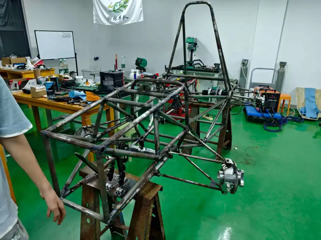 “有些部件我们设计后需要拿到外面加工,会花费资金,有些车队自己就能生产,他们的材料也更好,会使用金属3D打印、碳纤维,也有数控机床、焊接平台,我们目前还在使用铬钼钢,纯手动焊接。”