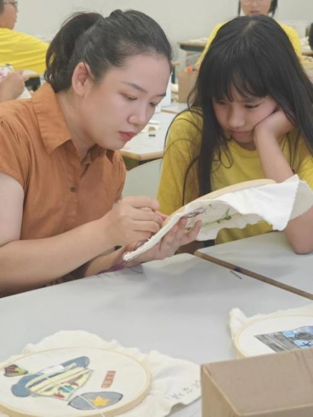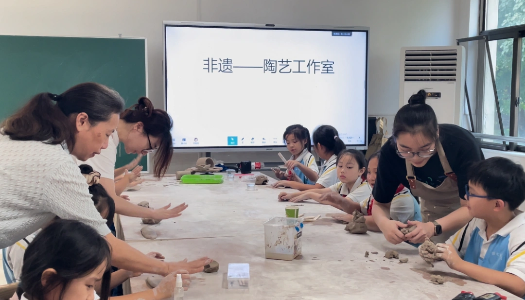 自2021年“双减”政策颁布后,湖南师范大学附属小学校长李晓玲带领团队探索出了“2+1+2”模式的课后服务课程体系,将非遗课程板块巧妙地融入其中。学校精心开设了湘绣、陶艺、版画、服饰、花鼓戏、方言等极具特色的非遗课程,形成覆盖全学段的美育浸润网络。每到课后服务时间,校园里便充满了孩子们专注学习非遗技艺的身影,或是一针一线地刺绣,或是用心塑造陶艺作品,又或是专注地刻画版画,场面十分热闹。