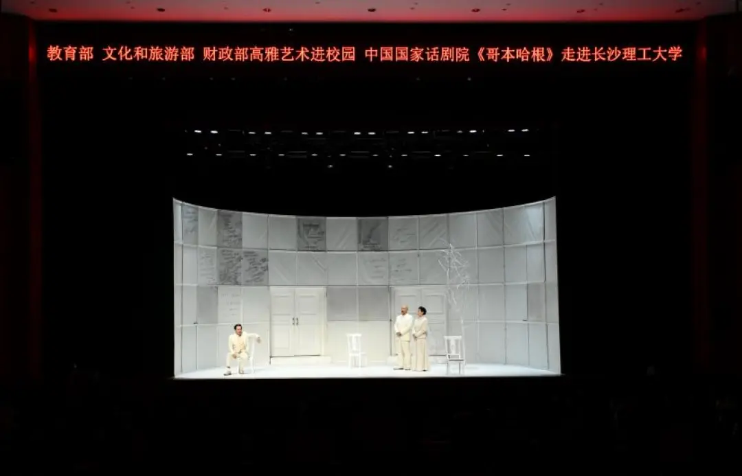 10月18日晚,由教育部、文化和旅游部、财政部主办,湖南省教育厅、长沙理工大学承办的高雅艺术进校园活动——中国国家话剧院经典剧目《哥本哈根》在长沙理工大学云塘校区大会堂上演,千余名师生共同观看演出,现场气氛热烈,反响积极。