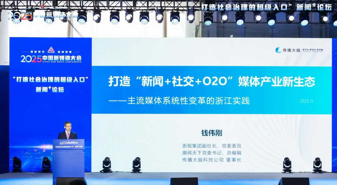 浙报集团副社长、潮闻天下总编辑钱伟刚分享了浙报集团在媒体深度融合转型中的创新探索与实践成果,其核心是构建以“潮新闻”客户端为枢纽的“新闻+社交+O2O”新生态。