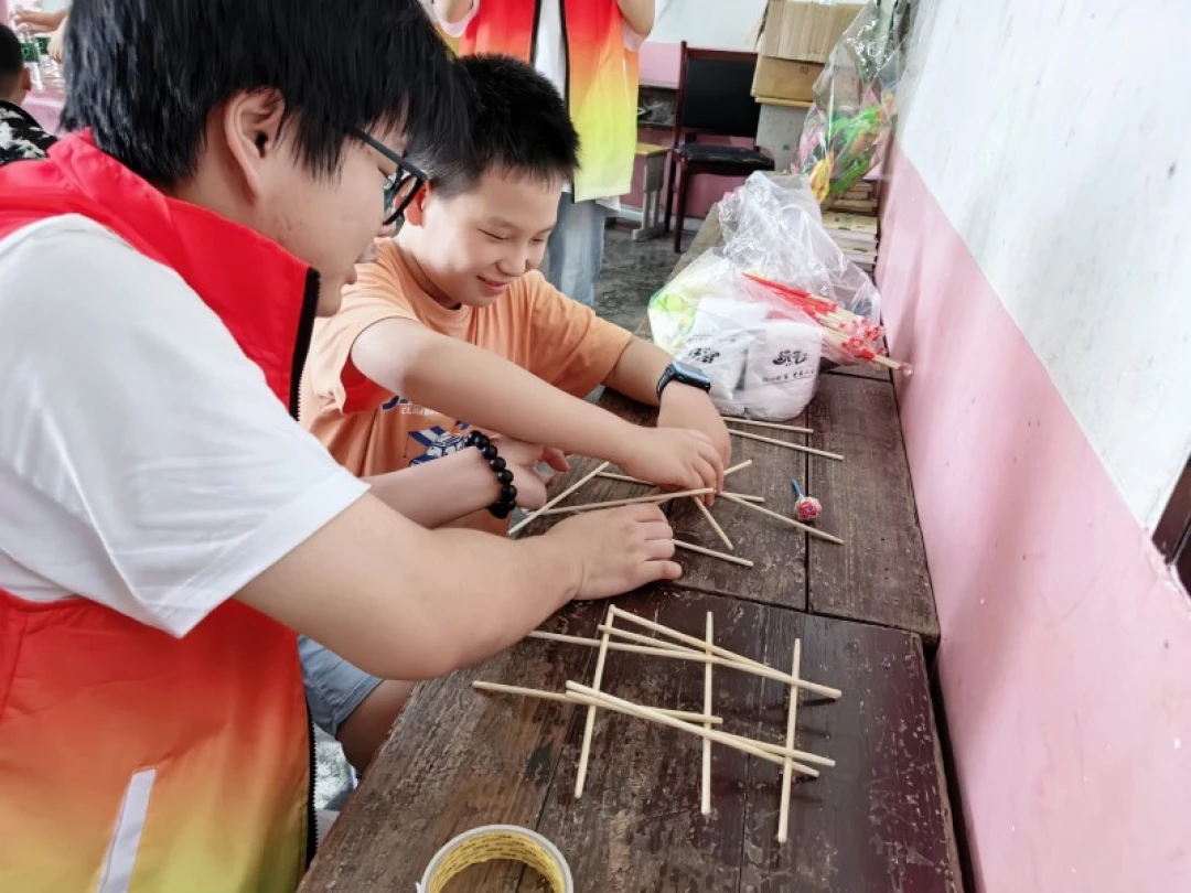 一页页PPT知识展示、一堂堂知识讲解、一次次互动体验……团队还为青峰村6岁到12岁的小学生精心设计了主题趣味科普课堂。课堂上,团队成员通过生动的音频图文讲解房屋结构基础知识,通过搭建“达芬奇桥”展示桥梁的稳定性与支撑性,通过益智的模型演示讲解结构原理,孩子们在踊跃答题、搭建模型、积极实践过程中,感受到了成为“小小工程师”的乐趣。
