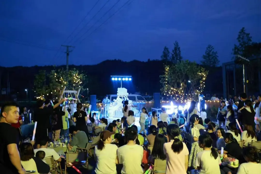 7月11日晚,青山镇大沙里野孩子自然农场化身天然音乐厅,由镇团委、民生事务办主办的“在青山 嗨一夏”老友音乐会在此温情上演。来自高校三下乡团队、本地新村民与留守儿童等100余人,以星空为幕、稻浪为席,用不插电形式,通过三个特色篇章演绎乡村振兴的青春叙事。