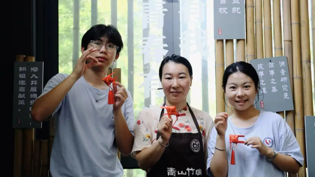 实践团深入青山铺镇,对话长沙山歌非遗传承人杨佑仁、竹编非遗传承人袁美娇,见证到朴素的文化情怀。乡野之间,实践团队员们聆听着传承人杨佑仁老人、袁美娇老师的传奇故事。杨佑仁即兴吟唱自创山歌《心中的赞歌唱不完》,实践团成员记录下老人“下田劳作时唱歌统一步伐”的鲜活记忆,听音译谱,为传习所新增数字化影音档案。在袁美娇的竹编工坊,队员们体验了到了编织的乐趣,也感受到了非遗文化在乡村振兴中的当代生命力。他们坚守热爱,几十年如一日,用行动证明:真正的传承,是让非遗文化在乡土间、田野中、生活里抽枝发芽。