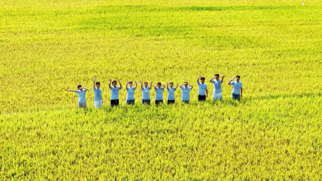 团队在长沙县青山铺镇洪河村万亩示范田开展“田埂里的课堂”活动。队员们身着统一文化衫,在稻浪间齐唱《禾下乘凉梦》,用无人机多角度记录这场融合自然与艺术的田野音乐会。行走稻香田间,在稻田里跟随音乐放声歌唱,感受艺术的魅力,这种“泥土音乐课”让大家在劳作中深刻体会“粒粒皆辛苦”的内涵。田野里的课,这种“艺术+农耕”的美育新模式,实则是一种劳动创造美、美反哺劳动的教育模式,既是在重塑当代青年对土地的理解,也是在传承农耕文化,为当地文旅注入了新活力。